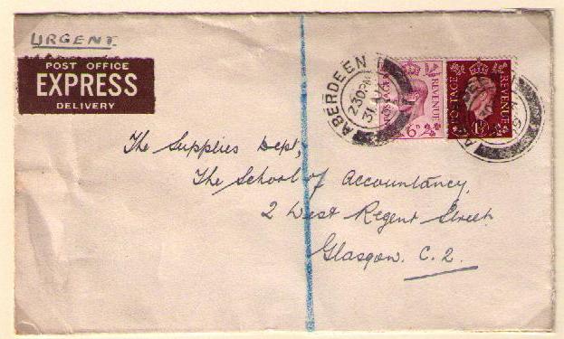 10 1/2d. paying the 1 1/2d. letter rate + 6 d. Special Delivery fee + 3 d. Registration fee