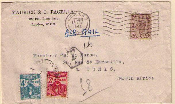 Shortpaid 1d. and British tax 16 centimes. Tunisian due 6 francs.